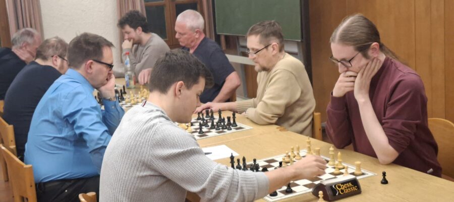 Beitragsbild: Bernd Grill behielt in dem 9-köpfigen Teilnehmerfeld souverän die Oberhand Das Monatsblitzturnier Februar wurde eine ganz sichere Beute von Bernd Grill. Er holte aus 8 Partien die vollen 8 Punkte und distanzierte seine schärfsten Konkurrenten Werner Junger und Jan