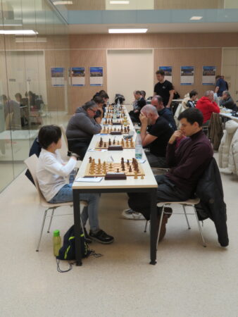 In einem gehaltvollen und komplexen Mittelspiel musste sich Nils Wurmbauer (4) lange Zeit seiner Haut erwehren, nachdem der Gegner stets eine kleine, aber doch recht lästige Initiative entwickeln konnte. Mit der umsichtigen Verteidigung des entstandenen Turmendspiels sicherte er sich aber einen verdienten halben Zähler. Umgekehrte Vorzeichen gab es dagegen bei Werner Junger (5), der seinen Gegner kräftig einschnürte, aber letztlich keinen Gewinnplan fand, zu viel Gegenspiel zuließ und am Ende leider doch ins Remis einwilligen musste. Die Entscheidung musste somit an den vorderen beiden Brettern fallen: Bernd Grill (1) lieferte sich mit seinem Gegner eine Neuauflage von Shakespeares „Comedy of Errors“, denn der komplexe Gehalt der Stellung hatte seinen Tribut gefordert und beide Spieler mehrmals erkennbar vom besten Weg abschweifen lassen. Als die Komplikationen schließlich abgeebbt waren, entstand ein Turmendspiel, das totremis war und mit der Punkteteilung endete. Michael Rupp (2) hatte zwischendurch über einen Bauer Vorteil, verzettelte sich aber leider und driftete unmerklich in ein schlechtes Endspiel, das leider Gottes verloren ging und den Gästen somit den ersehnten Punkt zum Unentschieden sicherte.