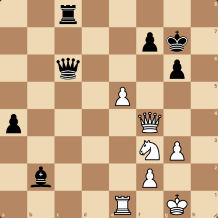 Somit kam Weiß zum Sieg, obwohl er während der gesamten Partie kein einziges Mal auf Gewinn stand.