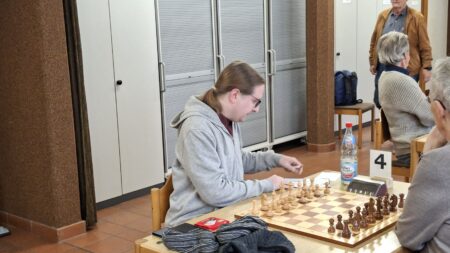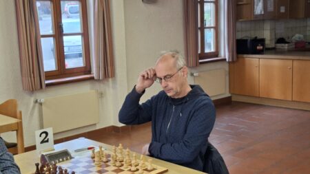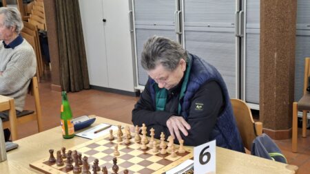 Ein Isolani genügt – für Hans Leutz (5) sicherlich, der ebenjenen isolierten Bauern seines Kontrahenten ins Kreuzfeuer nahm und erobern konnte. Sein konsistentes Spiel auf die gegnerischen Schwächen, ohne eigene zu entblößen, setze sich auch bis zum Endspiel fort und wurde in einen verdienten Sieg umgemünzt.