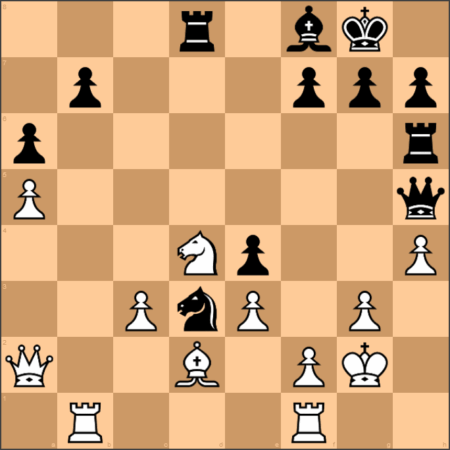 Der von den weißen Figuren verwaiste weiße Königsflügel erlaubte ein sehenswertes Finale furioso: es geschah 29… Td8xd4! 30. e3xd4 Dh5-f3+ 31. Kg2-g1 Th6xh4! 32. g3xh4, wonach 32… Lf8-d6! sofort gewonnen hätte. Jedoch änderte das Einsammeln des h-Bauern mit 32… Df3-g4+ 33. Kg1-h1 Dg4xh4+ 34. Kh1-g1 Dh4-g4+ 35. Kg1-h1 Dg4-f3+ 36. Kh1-g1 nach 36… Lf8-d6! nichts Wesentliches. Nach dem letzten Schwindelversuch 37. Ld2-f4 hoffte Weiß wohl noch auf 37… Ld6xf4? 38. Tf1-e1!, da die nun geräumte 2. Reihe die Deckung des f-Bauern mit der Dame erlaubt. Nach 37… Sd3xf4! musste Weiß aber wegen des unvermeidbaren Matts auf g2 die Waffen strecken.