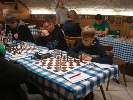 Gegen Freibauer Esslingen wurde schon letztes Jahr gespielt, allerdings als Heimmannschaft – diesmal durften wir als Gast zum ersten Mal die Spielstätte des von Schachabteilung zur Eigenständigkeit avancierten Vereins bestaunen. Ob der Gewölbekeller der Marinekameradschaft mit seinem nautischen Charme nur Übergangslösung oder langfristiges Konzept ist, wurde nicht erfragt. Eine schöne Kulisse bietet er allemal!