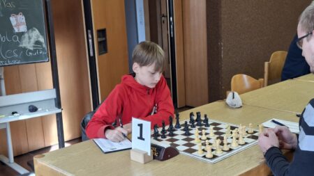 Als letzter kämpfte Lars Hildebrandt an Brett 4 mit den weißen Steinen. Nach einer gewohnt verlaufenen Eröffnung deutete sich auch hier ein Remis an. Im Bauernendspiel „vergaß“ der Gegner zu unserem Glück jedoch die En-passant-Regel, so dass sich Lars einen unaufhaltsamen Freibauer verschaffen konnte. Letztendlich gab sein Gegner auf.